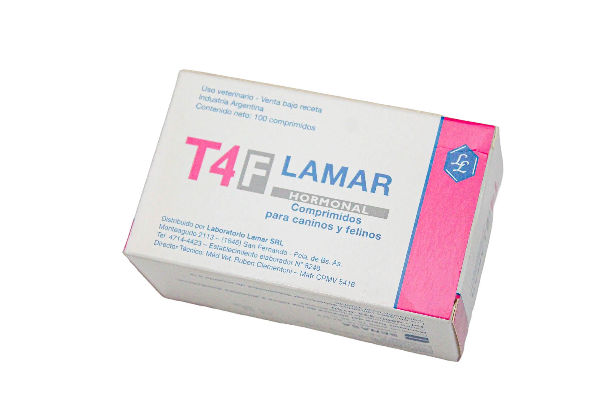 Dosificación: 0,02-0,03 mg/kg una vez al día o dividida en dos administraciones, según el caso clínico. Para T4 “F”: corresponde aproximadamente a 1 comp/45 kg de peso una vez al día. La dosis se relaciona mejor con la superficie corporal: 0,5 mg/m2, por lo que es menor, por cada kg, en animales pesados. La mejoría de los síntomas generales y nerviosos se observa a las seis semanas, de lo contrario probablemente deba replantearse el diagnóstico. Las lesiones de piel tardan más en mejorar. El tratamiento es de por vida, y se gradúa la dosis de acuerdo al caso individual.